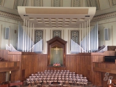 HISTORY: VERY LIGHT, ONLY SPOKEN WORD AND LIGHT ACOUSTIC REINFORCEMENT. SYSTEM WAS PERMANENTLY INSTALLED AND SHOWS ONLY VERY MINOR WEAR FROM TRANSPORT AND TRANSFER.