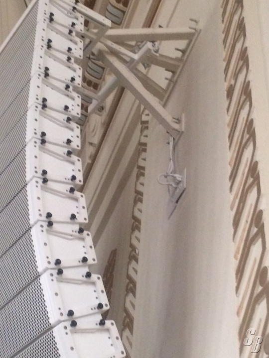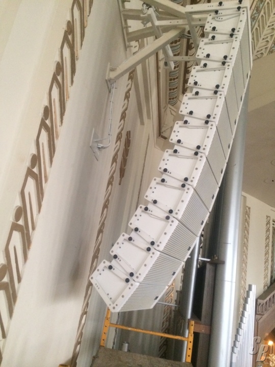 FEATURES: WHITE COLOR MEYER M1D LINE ARRAY LOUDSPEAKER SYSTEM, IN EXCELLENT CONDITION. SYSTEM ORIGINALLY INSTALLED IN 2006 AND PROVED FAR TOO POWERFUL FOR THE CLIENT'S NEEDS AND WORSHIP SPACE.