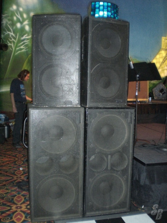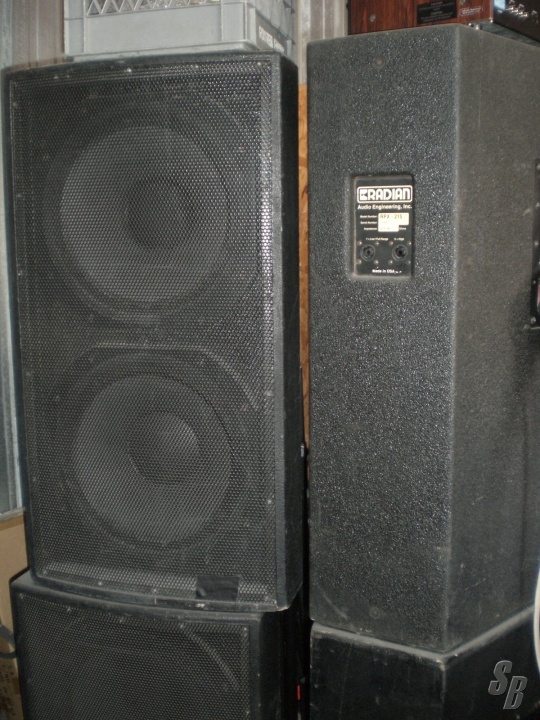 SIX STACKS OF RADIAN CO-AX ,DURADIAN-IZED, TRAPAZIODAL SPEAKERS. 6-RPX215B WITH NL4 & EP6 CONNECTORS.(16-15" + 8-2")+ 6-RPS218 WITH NL4 CONNECTORS.IF EP6 IS USED, SUBS JUMP TO TOPS.