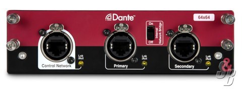 DESIGNED TO HELP INTEGRATE DLIVE AND AVANTIS INTO A WIDE RANGE OF LIVE, INSTALL AND BROADCAST SCENARIOS, THE DANTE 64×64 AUDIO NETWORKING CARD OFFERS LOW LATENCY, HIGH CHANNEL COUNT CONNECTIVITY TO DANTE NETWORKS AND DEVICES USING STANDARD NETWORKING CABLING AND HARDWARE.
