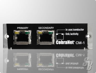 THE ELECTROVOICE MODEL NETMAX CM-1 COBRA NET AUDIO NETWORK MODULE. THE CM-1 IS A COMPACT INTERFACE MODULE FOR CONNECTION TO A COBRANET NETWORK, WHICH ALLOWS THE SIMULTANEOUS TRANSMISSION OF UP TO 32 DIGITAL AUDIO INPUT SIGNALS AND 32 DIGITAL AUDIO OUTPUT SIGNALS. KEY FEATURES: 100BASE-TX ETHERNET INTERFACE; 100MBITS FULL-DUPLEX ETHERNET INTERFACE. SECOND ETHERNET INTERFACE FOR THE CONNECTION OF A REDUNDANT NETWORK TO ESTABLISH FAULT TOLERANT SYSTEMS. FOUR SERIAL OUTPUT PORTS. ALL CHANNELS FULLY LICENSED