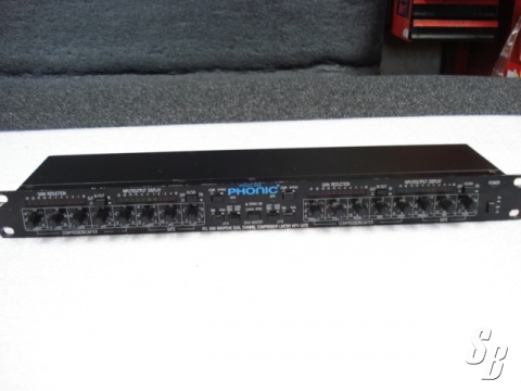 FEATURES: PHONIC PCL3200 DUAL CHANNEL COMPRESSOR LIMITER WITH GATE 1/4 IN/OUTS WITH SIDE CHAIN AC10V