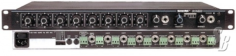 SHURE MODEL SCM800, EIGHT-CHANNEL MICROPHONE MIXER WITH EQ PER CHANNEL, AC ONLY, ONE RACK SPACE, RACK MOUNT READY.
