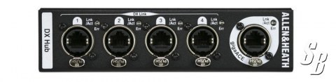 THE DX HUB IS A REMOTE AUDIO NETWORKING HUB THAT CAN BE CONNECTED TO ANY ALLEN & HEATH AHM-64, SQ OR AVANTIS MIXER VIA SLINK, OR ANY AVANTIS MIXER OR DLIVE SYSTEM FITTED WITH A GIGAACE I/O MODULE. IT PROVIDES 4 DX LINK PORTS EACH CARRYING 32×32 CHANNELS OF 96KHZ AUDIO, THAT CAN BE USED TO CONNECT TO DX EXPANDER UNITS.