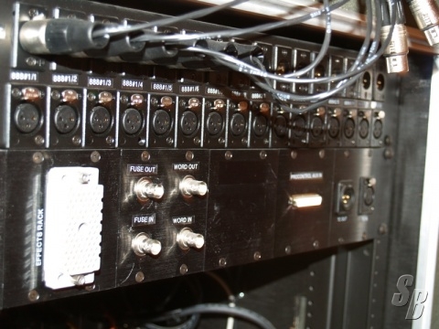 THE MAIN RACK HAS HARD WIRED PANELS WITH XLR INS & OUTS FOR BOTH 888 24’S AS WELL AS VIDEO IN/OUT & HOUSE SYNC IN & OUT & TIMECODE IN & OUT.
