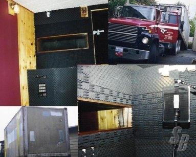 * CONSTRUCTION: STAGGER-STUD, 2X4 WALLS, FLOATED ON RUBBER; SHEET ROCK HUNG ON RESILIENT CHANNELING, NOT TOUCHING FLOOR OR CEILING; AND SEALED. ALL WALLS AND CEILING FILLED WITH BLOWS CELLULOSE INSULATION (DON'T HAVE NUMBERS, BUT VINCENT SAID IT WAS THE BEST THING NEXT TO SAND.)