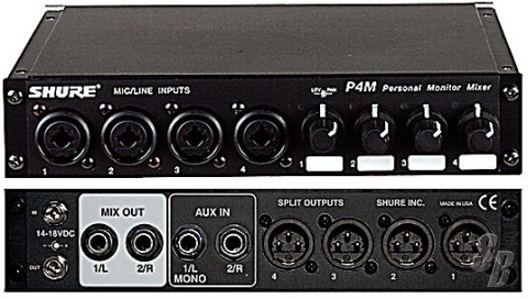 SHURE P4M, 4-CHANNEL MIXER WITH SPLIT OUTS AND STEREO AUX IN, HALF RACK SPACE,