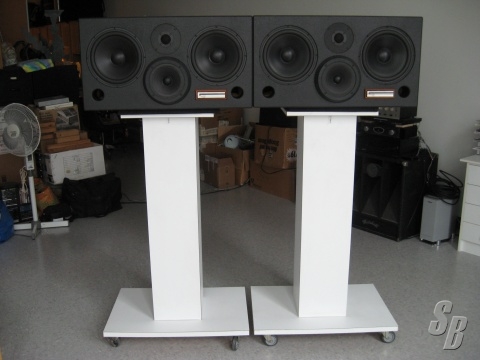COMMENTS: SPEAKER STANDS ARE NOT INCLUDED. IF YOU ARE INTERESTED IN THESE, I MAY CONSIDER SELLING THEM FOR AN ADDITIONAL $250. FOR BOTH. THESE WERE CUSTOM MADE OF HEAVY FLOORING PLYWOOD WITH LAMINATE AND CASTERS. WEIGH NEAR 100 LBS EACH, SO SHIPPING MAY BE HIGH VS WORTH OF STANDS.