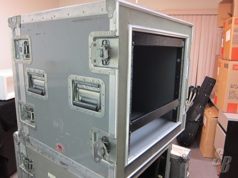 JAN-AL 10 SPACE DOUBLE RAIL SCHOCK MOUNTED ROADCASE, NO WHEELS WITH RUBBER FEET