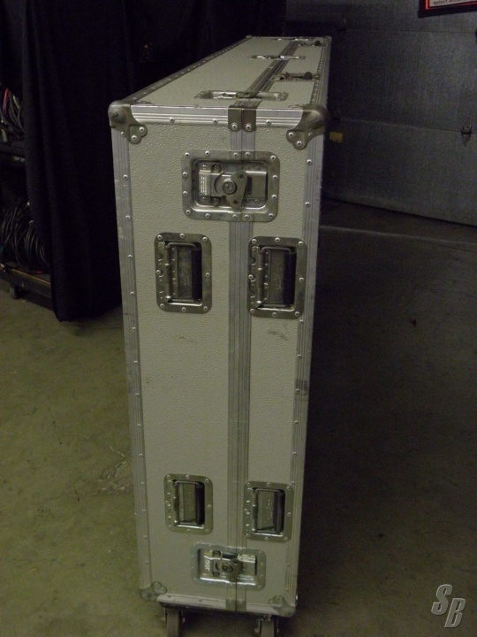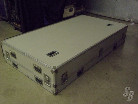 ROAD CASE IS IN EXCELLENT CONDITION. NO CRACKS OR DAMAGE TO LAMINATE. LATCHES AND CASTERS WORK LIKE NEW. NO DETERIORATION OF INNER FOAM. DOGHOUSE W/2 HINGED LIDS.
