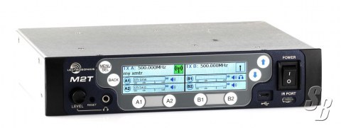THE M2T HALF-RACK TRANSMITTER HOUSES TWO INDEPENDENT STEREO TRANSMITTERS ALLOWING FOR UP TO FOUR STEREO OR DUAL-MONO TRANSMISSIONS IN A SINGLE RACK SPACE. THE ANALOG INPUT CONNECTORS ARE FULL SIZE XLR/TRS COMBO TYPES FOR BALANCED LINE LEVEL ANALOG SIGNALS WHILE THE INPUT PREAMP CIRCUITS USE A SPECIAL BALANCED AMPLIFIER WITH VERY HIGH COMMON MODE REJECTION TO MINIMIZE HUM AND NOISE. RJ45 JACK PROVIDES AN ETHERNET CONNECTION FOR PROGRAMMING AND CONTROL VIA WIRELESS DESIGNER™ SOFTWARE AND A USB JACK ON THE FRONT PANEL ALLOWS FOR FIRMWARE UPDATES. THE TRANSMITTER FEATURES A FULL COLOR, BACKLIT LCD FOR HIGH VISIBILITY IN ANY ENVIRONMENT, WHILE THE CHASSIS IS ALL-METAL AND CAN BE RACKED SINGLY OR IN PAIRS USING INCLUDED RACK MOUNT HARDWARE.