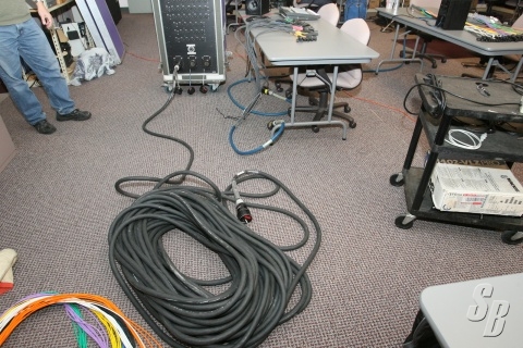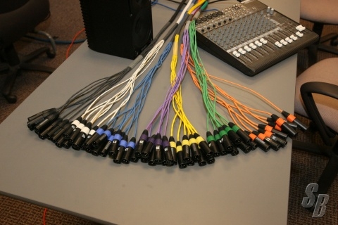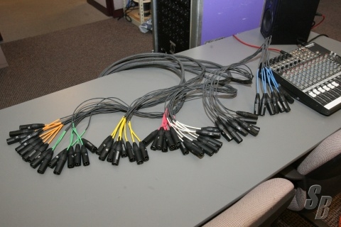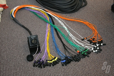 OUTPUT SNAKE C: 25’ 56 CHANNEL MASS THAT FANS OUT (PARTIAL SNAKESKIN IN 8 CHANNEL BUNDLES) TO 56 CHANNEL XLR MALES. THIS COULD BE USED FOR MONITOR WORLD.