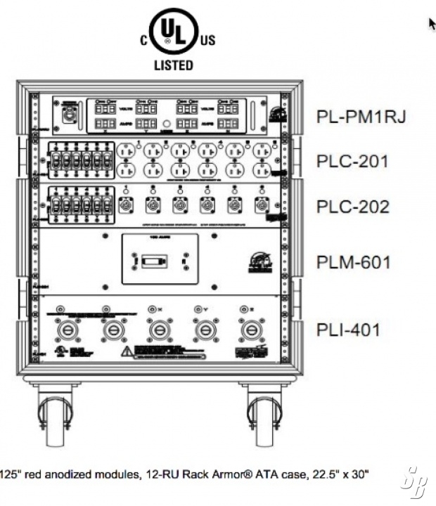 * NOTE: POWER DISTRO SHOWN LEFT IS ENCASED IN A CUSTOM DESIGNED RACK AVAILABLE UPON REQUEST. DISTROS WILL BE QUOTED WITH STANDARD UL LISTED, ATA FLIGHT CASE UNLESS OTHERWISE SPECIFIED.