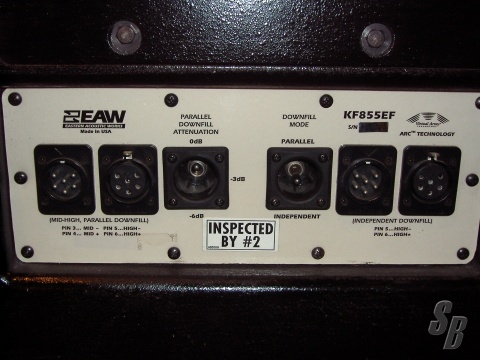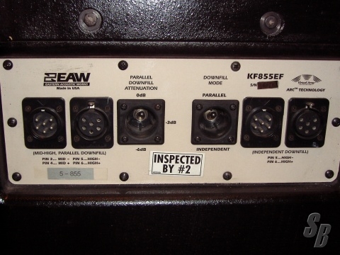 FEATURES: MF/HF DOWNFILL SYSTEM W/ 10IN. MF ON ASYMMETRICAL HORN AND 2X2-IN. EXIT HF ON SEPARATE HORNS FOR SEPARATE COVERAGE AREAS (ANGLED DOWN AT 10 AND 45 DEGREES)THE TWO HORNS CAN BE POWERED SEPARATELY OR IN PARALLEL . THE KF855EF WAS ENGINEERED TO TO SERVE AS A DOWNFILL LOUDSPEAKER IN AN EAW CONCERT TOURING STADIUM ARRAY. THE SYSTEM IS FLYABLE AND CAN BE INVERTED TO REACH BALCONIES IN CONVERTED MOVIE PALACES. OHMS: MF=8 ,HF=7 (PARALLEL) 2X12 SEPARATELY.POWER HANDLING: MF 400 WATTS, HF 400WATTS (PARALLEL)2X200 WATTS SEPARATELY. SPL LEVEL: 141.0PK AND 135.0 LONG TERM. MORE INFO CAN BE FOUND ON EAW WEBSITE, UNDER DISCONTINUED PRODUCTS .