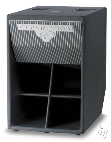 18" FOLDED HORN BASS SYSTEM HEAT SINK DESIGN PROVIDES INCREASED THERMAL POWER HANDLING AND DECREASED POWER COMPRESSION POWER HANDLING: 750 WATTS CONTINOUS; 1500 WATTS PEAK FREQUENCY RESPONSE: 30HZ - 300HZ 4" VOICE COIL 108DB SENSITIVITY @ 1 WATT/1 METER PERFECT FOR USE WITH CERWIN-VEGA FULL-RANGE CABS NOMINAL IMPEDENCE: 8 OHMS CONNECTORS: 1/4" NEUTRIK NEW CABINET AND CASTER DESIGN FOR EASY MOBILITY