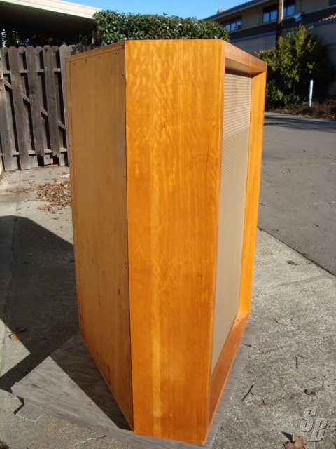 FEATURES: IT'S A LANSING C-31 CORNER SPEAKER CABINET WITH "PRIMA VERA BLONDE FINISH". VERY GOOD CONDITION EXCEPT A COUPLE OF MINOR DENTS IN SIDE WOOD, AND A COUPLE OF MINOR MARKS (BURN?) ON TOP OF CABINET.