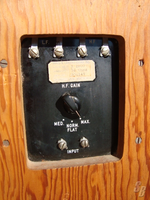 IT HAS TWO JBL 16 OHM D13OB 15" SPEAKERS KNOWN AS "THE SET". ALSO, A (K)D-175 HORN AND A 32 OHM CROSSOVER. FOR ALL TECHIE DETAILS AND HISTORY, GO TO THE LANSING HERITAGE SITE AND EXPLORE.