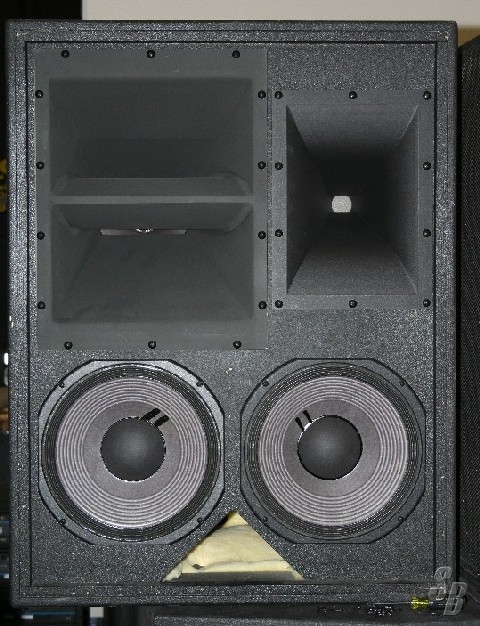 THIS SPEAKER ENCLOSURE IS A JBL CUSTOM SHOP PRODUCT. THIS IS A TRUE THREE WAY ENCLOSURE. IT IS LOADED WITH (2) 14" LF DRIVERS, (1) 10" MID DRIVER ON A HORN, AND (1) 4" COMPRESSION DRIVER ON A HORN. THE FREQUENCY RESPONSE IS +-3 DB 50HZ TO 16KHZ.