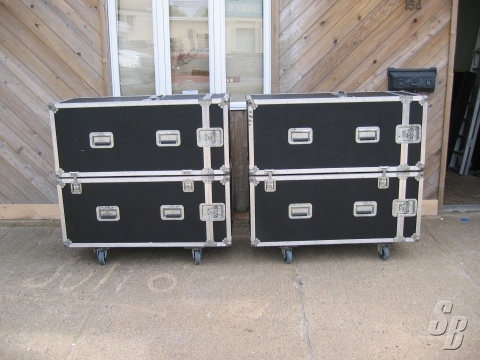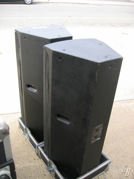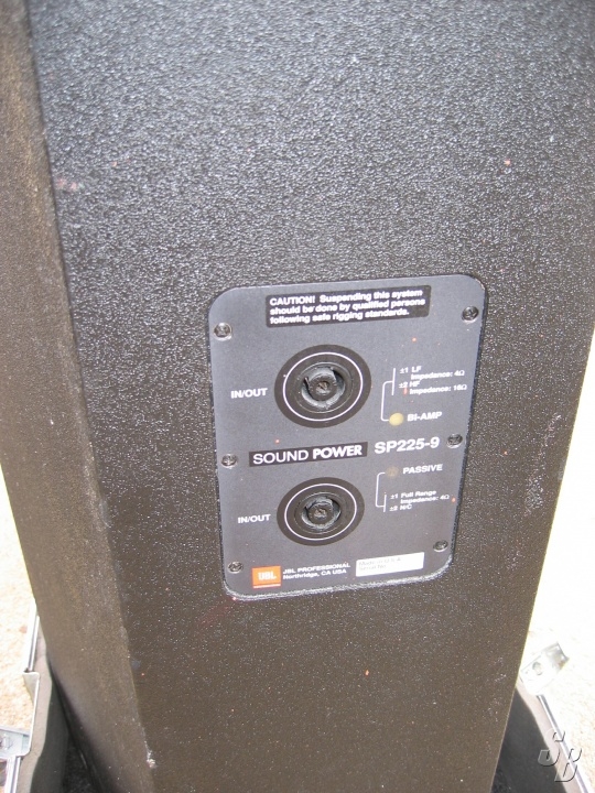 JBL SP226, GOOD CONDITION. ALL THE SPEAKERS TESTED WELL. EVERYTHING IS WORKING PROPERLY THE CABINET DOES HAVE BLEMISHES TO PAINT N GRILLS. THE CASES ARE SUPERB. ONE CASE CONNECTOR IS BROKEN BUT THE OTHER THREE HOLD WELL. ALL THE CASTERS N HANDLES WORK WELL. THERE IS ï½½ INCH OF FOAM AROUND THE SPEAKER BUT THE TOP N BOTTOM OF THE SPEAKER ARE JUST CARPETED IN THE CASE.