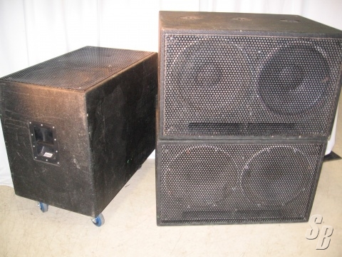 FEATURES: A DUAL 15” SPEAKER ENCLOSURE FOR PA SUBS. (NOTE: ENCLOSURE ONLY - DOES NOT INCLUDE SPEAKERS) STURDY CONSTRUCTION WITH HOLES FOR TOP MOUNTING SPEAKER POLES. NEVER TOURED AND USED PREDOMINANTLY IN CORPORATE SETTINGS, THESE CABINETS ARE IN GOOD SHAPE