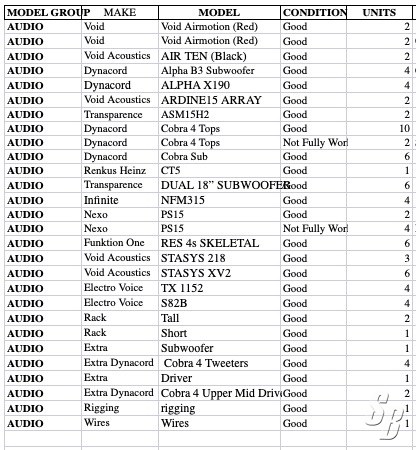 EQUIPMENT FROM DEFUNCT CLUB CALLED “FACTORY WOOD”