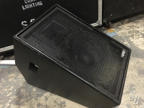 THE SM-1502 IS A STAGE MONITOR CAPABLE OF HIGH SPL FOR VOCAL OR INSTRUMENT MONITORING. LOW FREQUENCIES ARE HANDLED BY A FIFTEEN-INCH WOOFER CAPABLE OF 800-WATT PEAK POWER. THE HIGH FREQUENCIES ARE REPRODUCED BY A HORN AND DRIVER COMBINATION. THE TWO-INCH THROAT COMPRESSION DRIVER HAS A THREE-INCH VOICE COIL WITH A TITANIUM DIAPHRAGM AND IS CAPABLE OF 120 WATTS CONTINUOUS POWER HANDLING AT THE RECOMMENDED CROSSOVER POINT OF 1500 HZ. DISPERSION IS 70×50 DEGREES. THE SM-1502 SHOULD BE USED WHEN VERY HIGH SPL IS NEEDED ALONG WITH LONG TERM POWER HANDLING CAPABILITY. THE SM-1502 SHOULD BE USED WHENEVER MORE LOW FREQUENCY RESPONSE THAN THE SM-1202 IS NEEDED. THE ENCLOSURE IS ANGLED AT 35 AND 55 DEGREES.