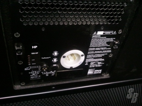 EACH CONE DRIVER IS DRIVEN BY A CHANNEL OF THE INTEGRAL TWO-CHANNEL CLASS AB/H AMPLIFIER WITH COMPLEMENTARY MOSFET OUTPUT STAGES. TOTAL POWER IS 2250 WATTS (4000 WATTS PEAK), AND THE OPERATING FREQUENCY RANGE IS FROM 33 HZ TO 150 HZ, WITH A PEAK SPL OF 138 DB. AN AMPLIFIER WITH INTEGRAL SIGNAL PROCESSING AND DRIVER PROTECTION IS INTEGRATED INTO A FIELD-REPLACEABLE MODULE MOUNTED IN THE REAR OF THE ENCLOSURE.