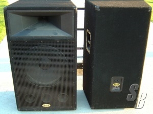 FEATURES: B52 SPEAKERS WITH A SINGLE 18" WOOFER AND A HORN WORKING GREAT. HAS 1/4 INCH INPUTS ON THE BACK AND RATED AT 550 WATTS.