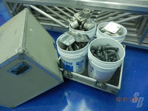COMMENTS: THERE ARE NO KNOWN PROBLEMS WITH ANYTHING EXCEPT ONE OF THE STAIR-TO-STAGE CLAMPS NEEDS A SMALL PLYWOOD SHIM TO TIGHTEN CORRECTLY. NOTHING IS STRIPPED OR BROKEN.