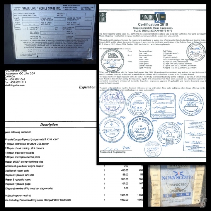 THE STAGE WAS SENT TO STAGELINE FOR THE MAINTENANCE WHICH WAS COMPLETED IN MAY OF 2015. SEE PHOTO FOR ENGINEERED STAMPS WHICH CERTIFY THAT THE STAGE WAS COMPLETELY VERIFIED TO BE IN GOOD CONDITION AND CONSIDERED TO BE AS SAFE AS IT WAS ORIGINALLY.