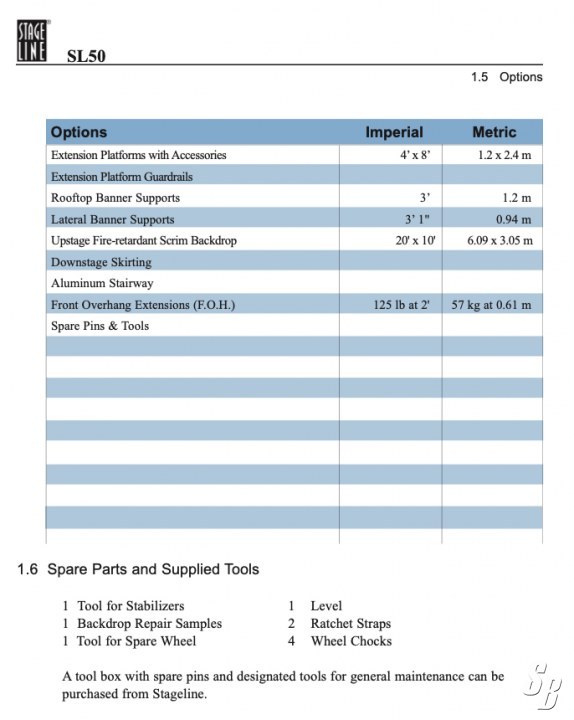 NOTE: STAGE IS NOT DESIGNED TO BE USED IN THE WINTER TIME.