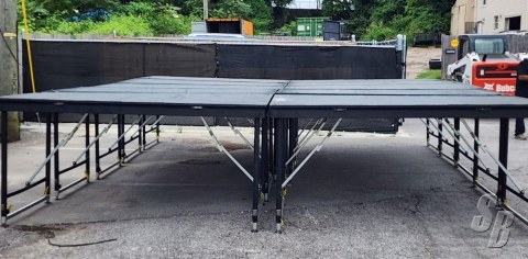 50 X 50 SICO STAGE AVAILABLE THERE ARE 78 DECKS SEVERAL TRANSPORT CARDS BACK RAIL TWO SETS OF STEPS AND IT’S IN GOOD CONDITION.