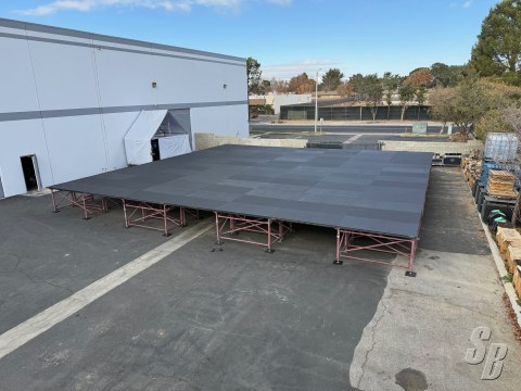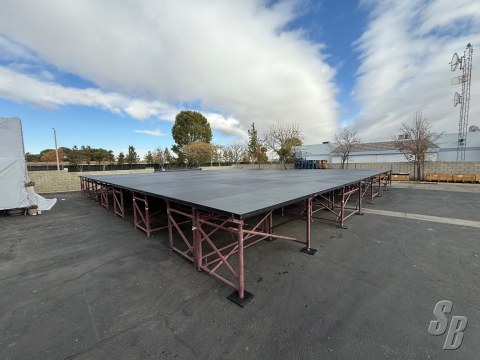 COMMENTS: SOME DECKS HAVE LIFTING CORNERS IF YOU HAVE MORE DECK THE FRAME CAN MAKE A LARGER STAGE THAN 56 X 56