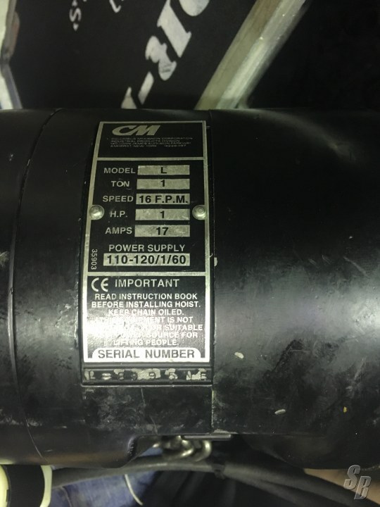 DISCLOSURE:BUYER REPRESENTS THAT BUYER IS KNOWLEDGEABLE HOW TO OPERATE AND USE THESE HOISTS AND AGREES TO HOLD SOUNDBROKER HARMLESS FROM ANY LIABILITY RESULTING FROM USE OF THESE HOISTS. IT IS ALSO AGREED THAT BUYER WILL HAVE THESE HOISTS RE-CERTIFIED BY AUTHORIZED CM LODESTAR VENDOR BEFORE USING THEM.