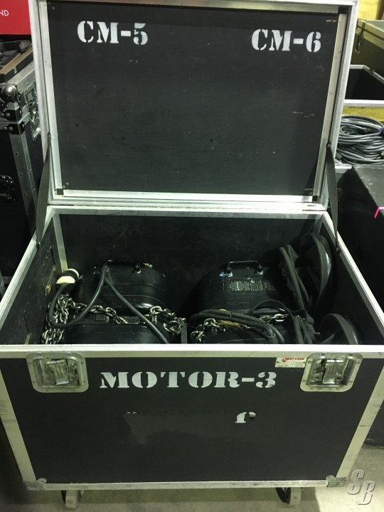 AVAILABLE FOR SALE:EIGHT (8) 1 TON SINGLE PHASE CM MOTORS IN ROAD CASES (2 TO A CASE) (YOM:????) (SN:TBD)