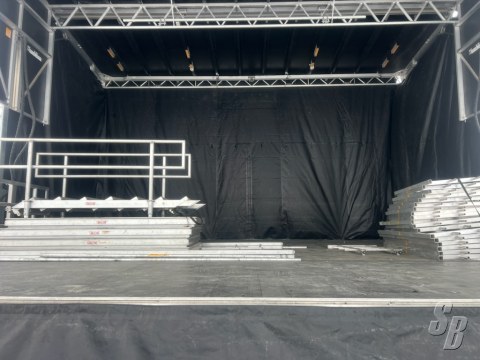 THIS STAGE IS LOADED WITH BANNER KIT, LED WALL, SUPPORTS, EXTRA PA ARMS AND A LOT OF ADDITIONAL FLYING HARDWARE