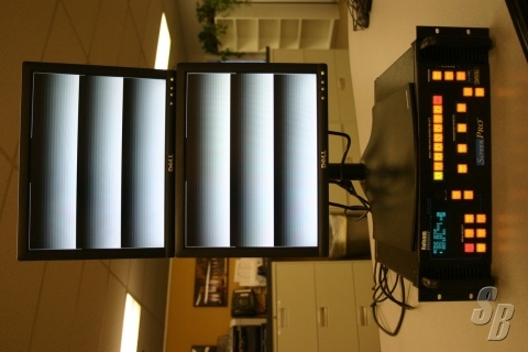 THE LCD PREVIEW AND PROGRAM MONITORS WERE OUTFITTED WITH VESA MOUNTS AND THEN MOUNTED TO AN ERGOTRON STAND FOR VERTICAL SETUP. THIS STAND FITS NICELY ON TOP OF THE SPR-2000. SEE PICTURES.