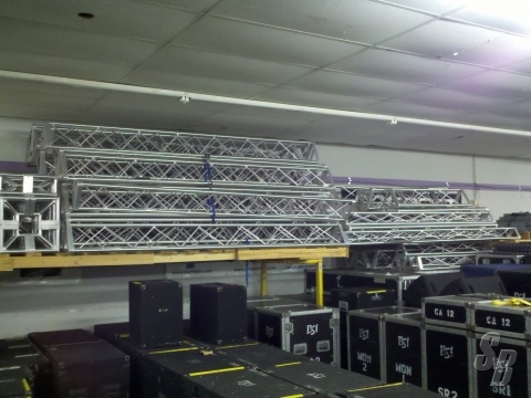FEATURES: APPLIED ELECTRONICS UL TRI TRUSS 12" THIS TRUSS WAS USED ONCE, IT WAS DESIGNED TO BE TWO 46'X35' VIDEO FRAMES (NO SCREEN INCLUDED)
