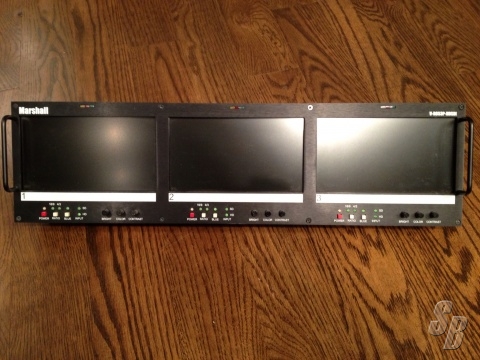HISTORY: THIS MARSHALL TRIPPLE SCREEN UNIT IS AWESOME. PERFECT FOR A LIVE MULTI CAMERA SETUP TO PREVIEW BEFORE SWITCHING. ALL THREE ARE HDSDI IN AND OUT. THIS UNIT HAS SEEN VERY LIGHT USE. NO SCRATCHES OR NICKS. ORIGINAL OWNERS. HAS ONLY BEEN USED IN A CHURCH ENVIRONMENT, NEVER ON THE ROAD. IN PERFECT CONDITION! THIS UNIT SELLS FOR OVER $3000 NEW. DON'T NEED THEM AT THE CHURCH ANYMORE, SO IT'S A DEAL FOR YOU! ASK AWAY WITH ANY QUESTIONS. THANKS!